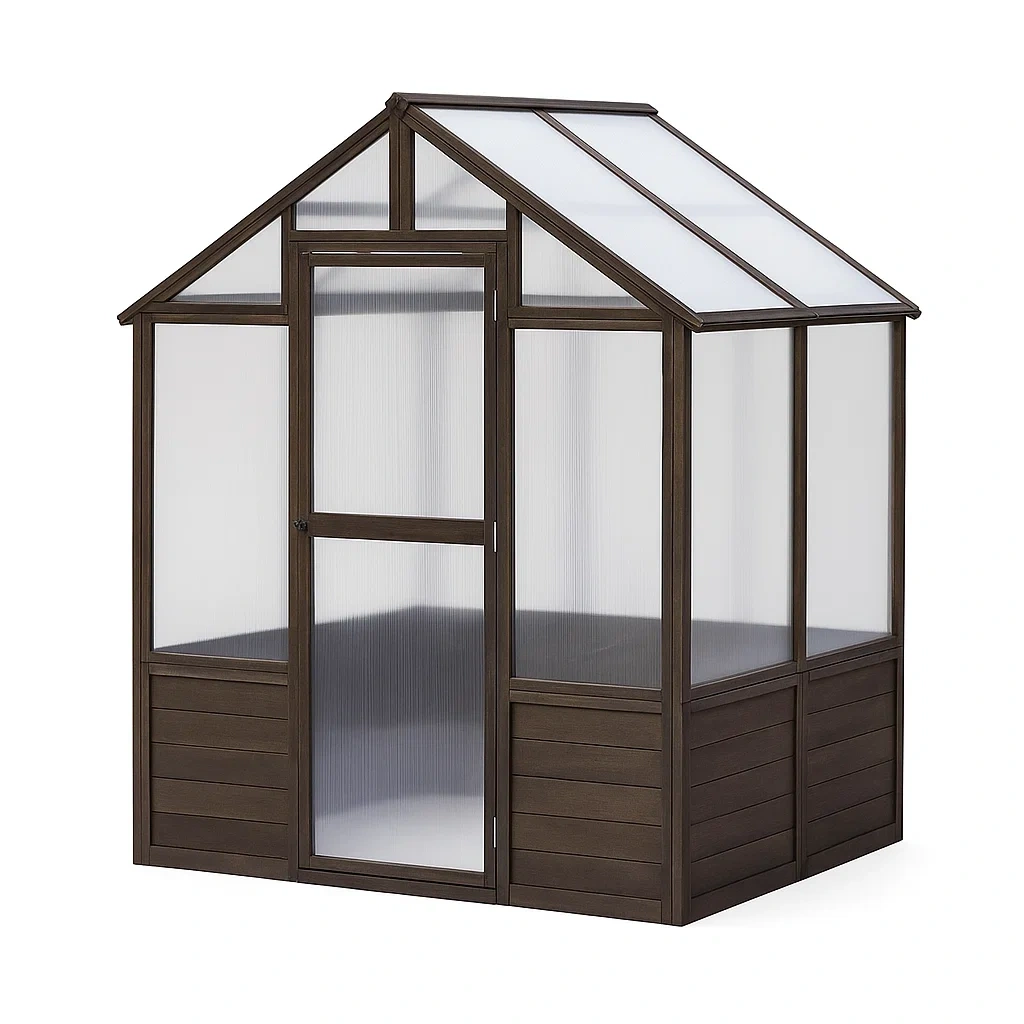 Materiali: telaio in alluminio, pannelli in policarbonato trasparente. Porta a battente.